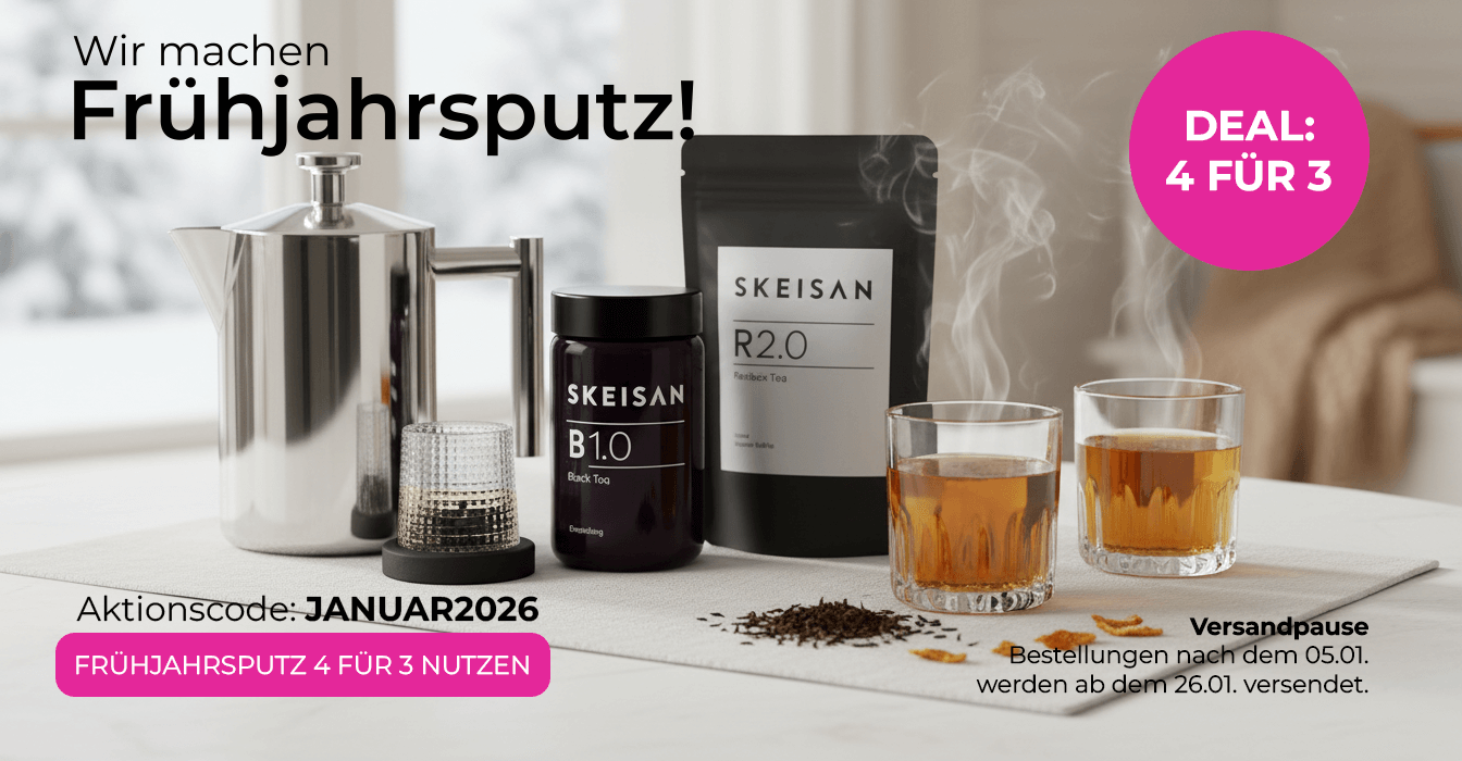SKEISAN steht für Premium-Tee neu gedacht: Höchste Qualität, moderne Mischungen und ein klares Design. Unsere Tees sind nicht in Traditionen verhaftet, sondern passen zu deinem Lifestyle – vom aromaversiegelten UV-Glas bis hin zu außergewöhnlichen Sorten, die ohne künstliche Zusätze auskommen.