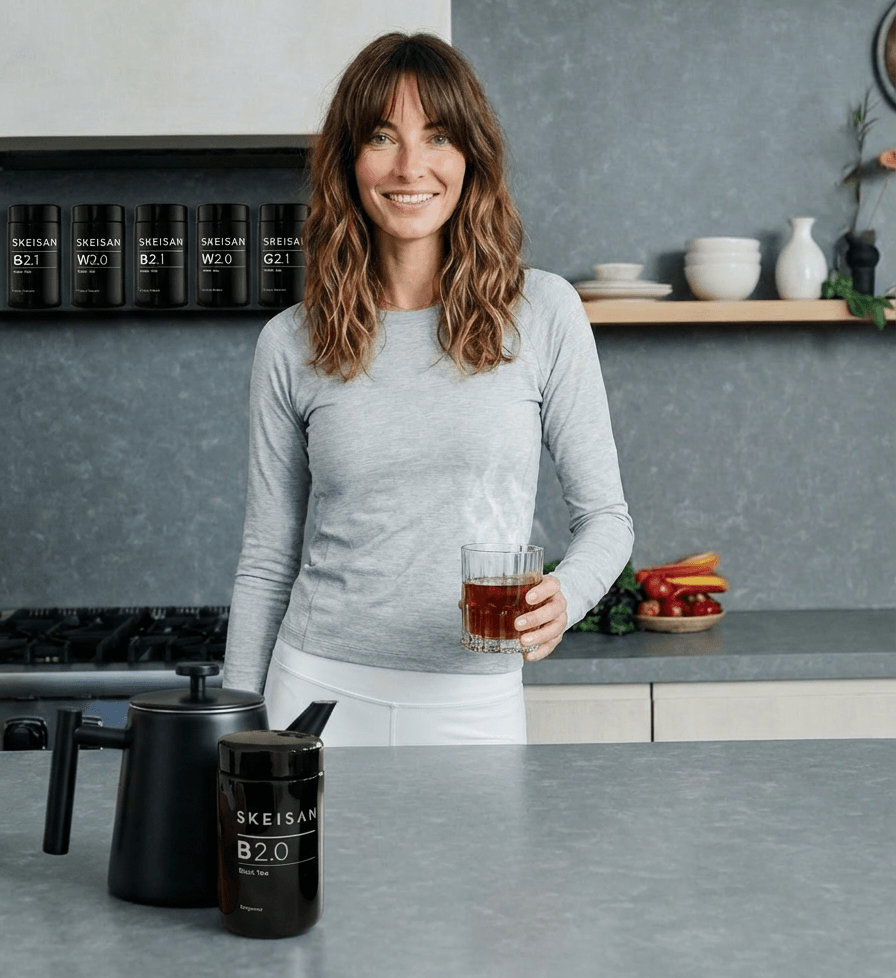 SKEISAN ist Tee. Das natürlichste Supplement der Welt. Wir nutzen unseren Tee als funktionales Supplement-System – wissenschaftlich fundiert, ästhetisch reduziert, genussorientiert. Kaffee aktiviert. Supplemente isolieren. Tee wirkt systemisch.